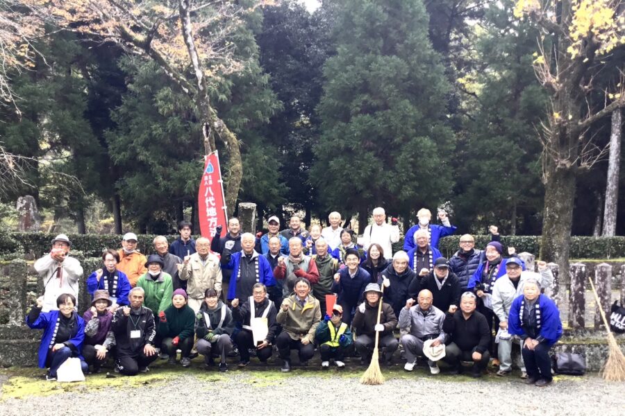 前回同様に八代市妙見町にある懐良親王御陵の清掃と悟真寺での昼食の後、同市二見の正福寺裏山にある菊池氏第14代当主菊池武士公墓所の清掃を行いました。