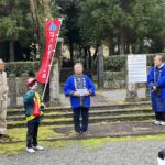 昼食の後、同市二見の正福寺にある菊池氏第14代当主菊池武士公墓所の清掃でしたが、竹林に覆われ倒れた木々を取り除く約1時間の作業を終え、心地よい汗と私たちの誇りである菊池一族への想いを胸に帰路につきました。