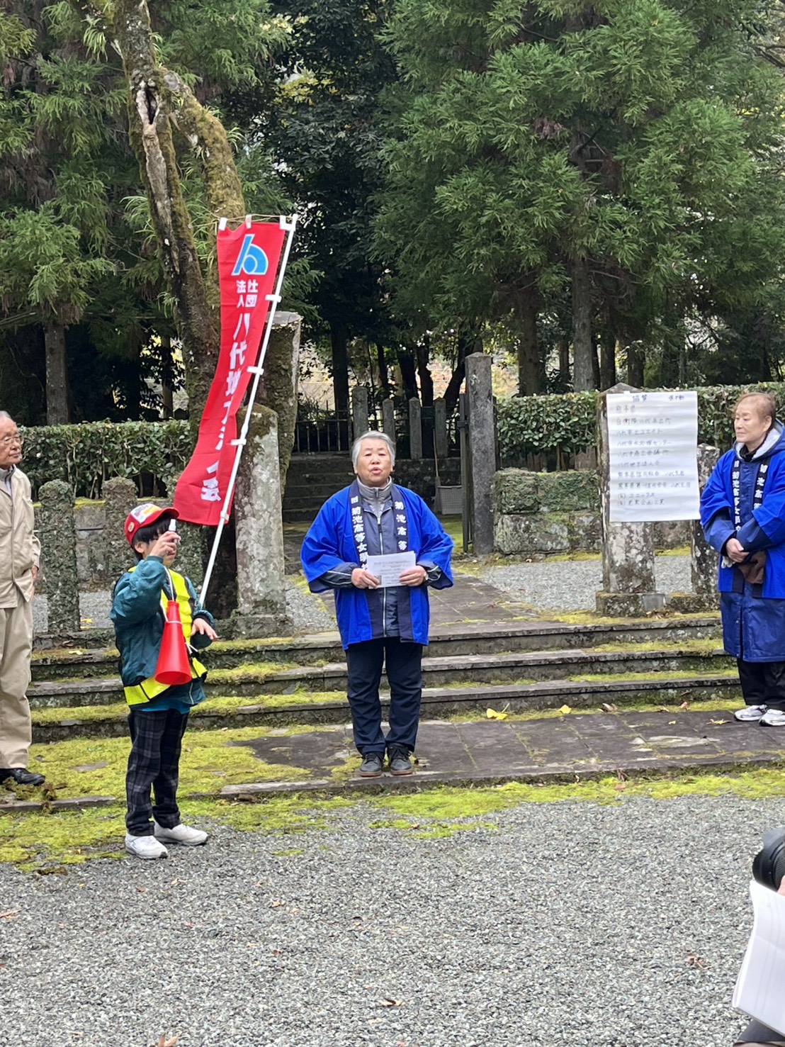 前回同様に八代市妙見町にある懐良親王御陵の清掃と悟真寺での昼食の後、同市二見の正福寺裏山にある菊池氏第14代当主菊池武士公墓所の清掃を行いました。