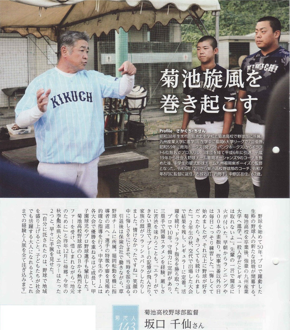 菊池高校野球部OBでプロ・アマを通して50年も野球に関わってきた坂口千仙さんが母校野球部監督に就任しました。