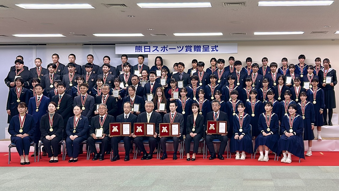「先週、娘が【熊日新聞スポーツ賞 奨励賞】を受賞し、授賞式に出席いたしました。また、熊本県スポーツ協会の【国際・全国スポーツ大会優勝祝賀会】に出席し、私も監督代理で出席したのですが、ありがたいことに会場では菊池市の方、菊池高校ご出身の方々にお声掛けいただき、改めて地元や同窓生の温かいつながりを感じました。今後ともどうぞよろしくお願いいたします。」